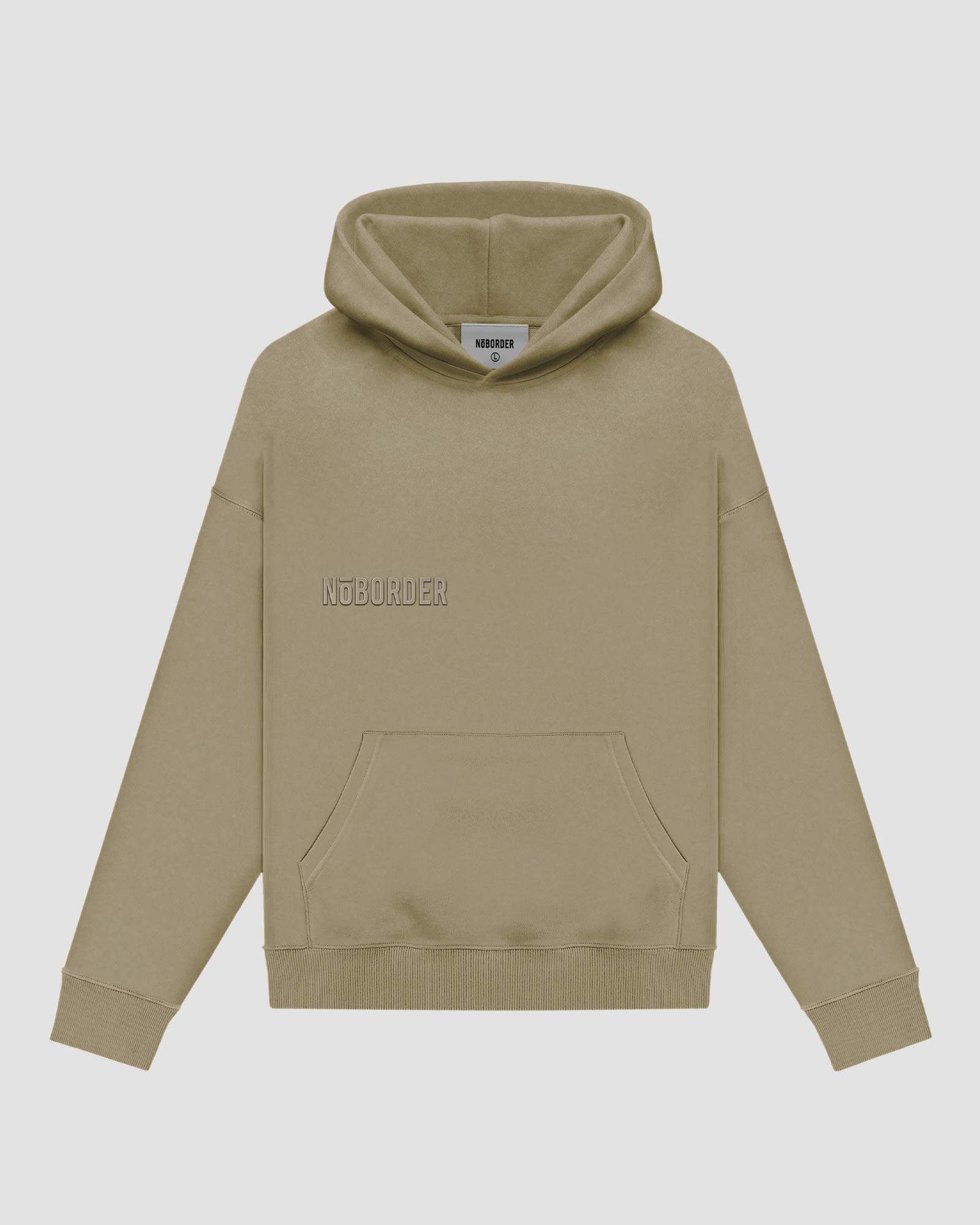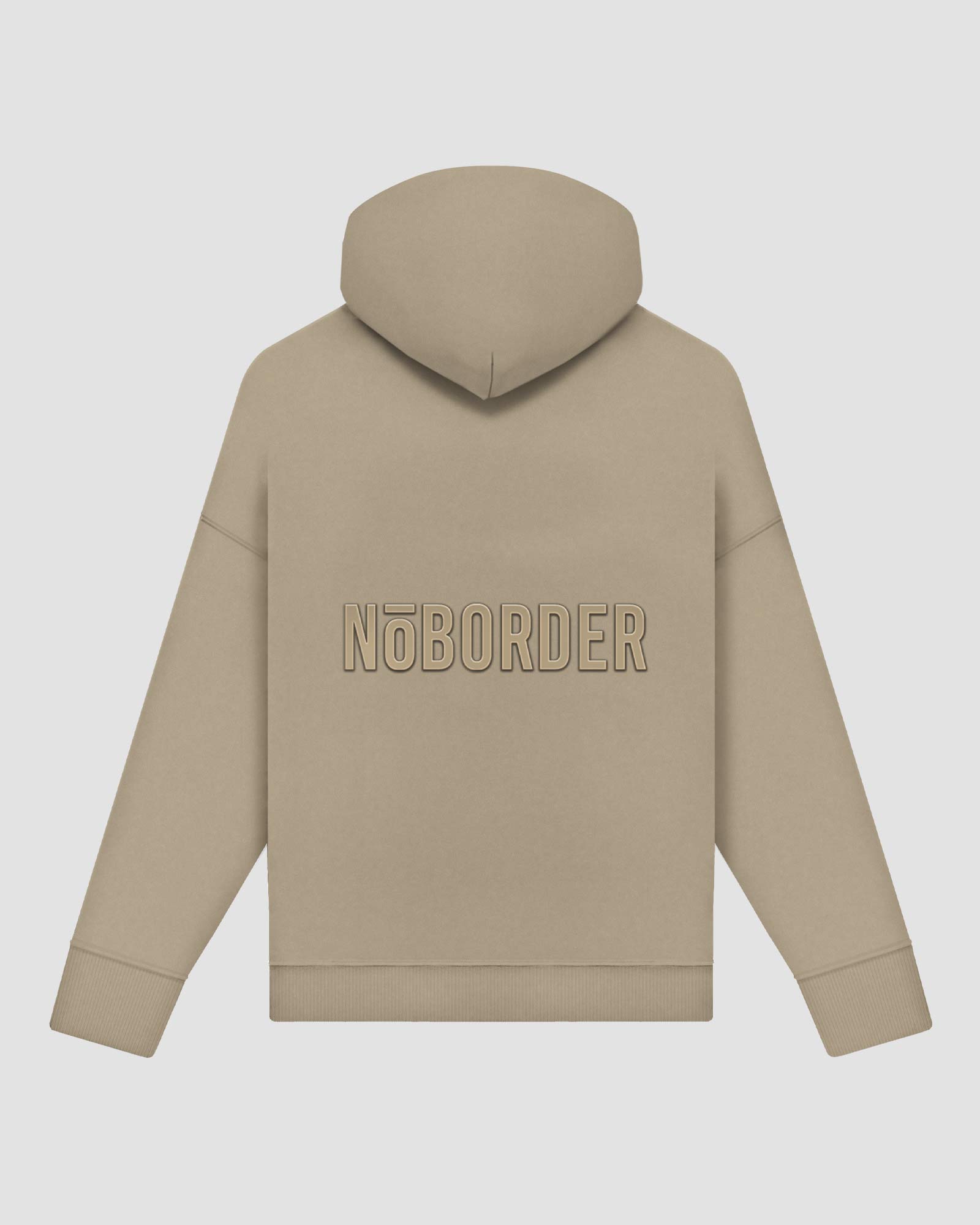 The "NOBORDER" hoodie is crafted from a thick, comfortable 100% cotton fleece, perfect for the A/W season. Key details include an overlapping neckline, a relaxed-fit body, and a front pocket. The NOBORDER label and print are tastefully placed for added style.